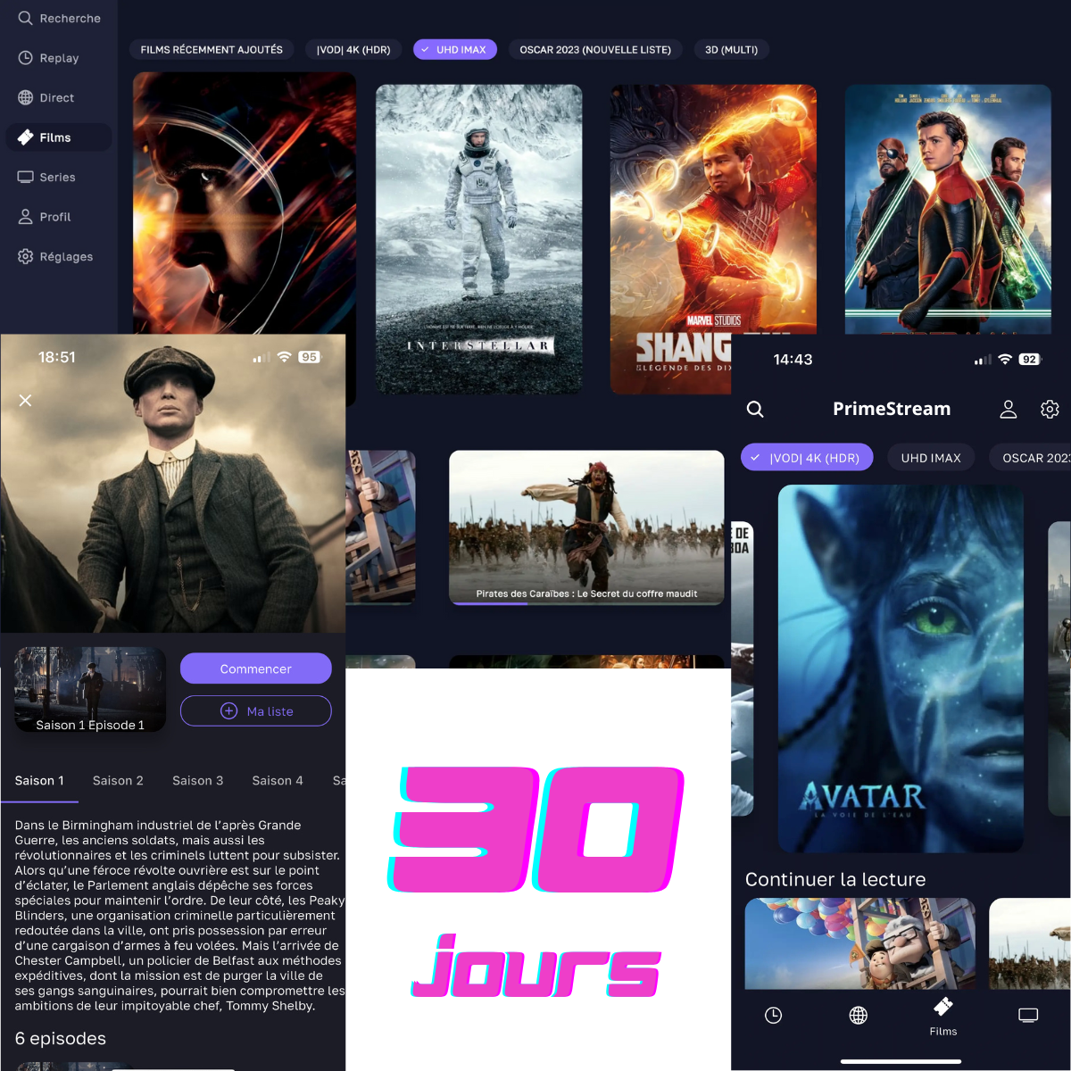 • 🎬 +100 000 films et séries (Netflix, Disney+, Prime Video, etc.)